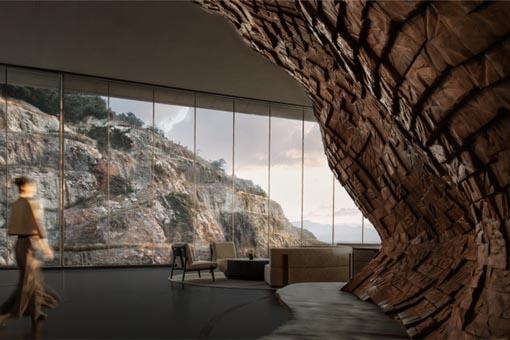 江蘇園博園珍寶博物館(以下簡稱珍寶館)位于江蘇園博園園區(qū)最北側,功能為傳統(tǒng)和民間藝術及工藝品展示,建筑占地面積15000平方米,總建筑面積約15500平方米。珍寶館位于園博園邊緣的地塊有著極具沖突的周邊環(huán)境——北側緊鄰京滬高鐵線,不斷有高鐵穿梭而過;南側隔河相望為VOCO園博村酒店,是靜謐宜人的小尺度村落感公寓式酒店。城市和村莊在這個邊緣地塊碰撞。折疊,原本是地質學中的概念——地殼運動擠壓巖層產生褶皺,形成折曲變化的肌理。項目所在地隸屬于湯山-方山地質公園,其著名的六大地層剖面是地質教學實習的經典剖面。建筑從文脈上承載在地性的記憶,并由此引出“折疊”的設計理念,設計從地域、場地、路徑、材質等多方面入手,思考建筑與場地的關系,規(guī)劃參觀與漫游的路徑,融入場所記憶和時間性,折疊概念的運用將這些思考串聯(lián)成為外在形態(tài)簡約、空間內容豐富的整體。